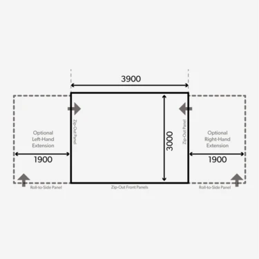 The operation couldn’t be easier, simply unzip the gusseted awning side panels, peg the awning down to fine tune , then close the internal zips to hide any excess material.