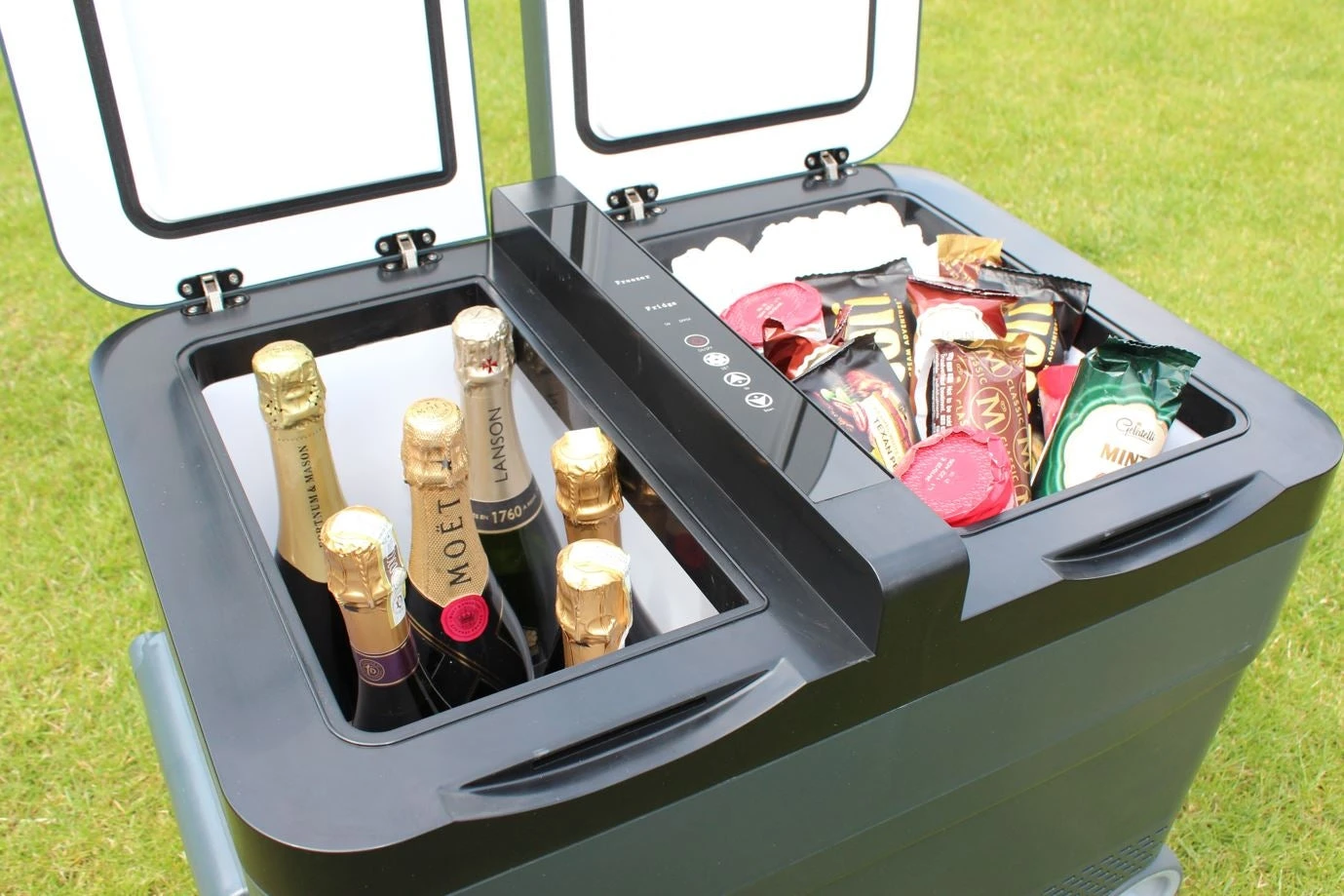 The Eco Deep Extreme Compressor Cooler 45L is our largest twin compartmented compact compressor cooler & freezer with a temperature range of 0C° to 10C° 30L cooler Zone & a -10C° to -20C° 15L freezer. It can be pre-cooled in the home before travel or on the campsite via a 230V adaptor with both UK and EU Plugs. Suitable for leisure automotive and camping applications.