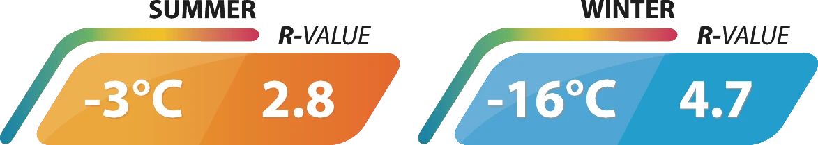 Ingenious heat regulation is achieved through offset air core sculpting which enables greater or less body heat retention depending on which mat side is slept on – a real performance boost when needed for optimum year round comfort. When the mat is turned with the air cores next to the body excessive heat can escape making it easier to cool down during warm summer nights. When the mat is turned the opposite way it gives the user the optimal insulation as the body heat is reflected by the foam. This option is used in colder nights. This air core design also offers campers a softer sleep sensation as well as better ease of packing, lower weight and neater packed size.
