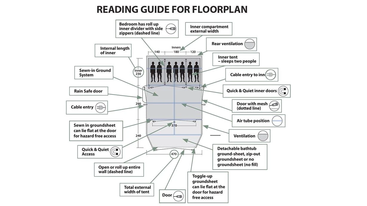 • Premier Bedrooms offer more space and help to make pitching easy; Cable Entry points to inners for mains access